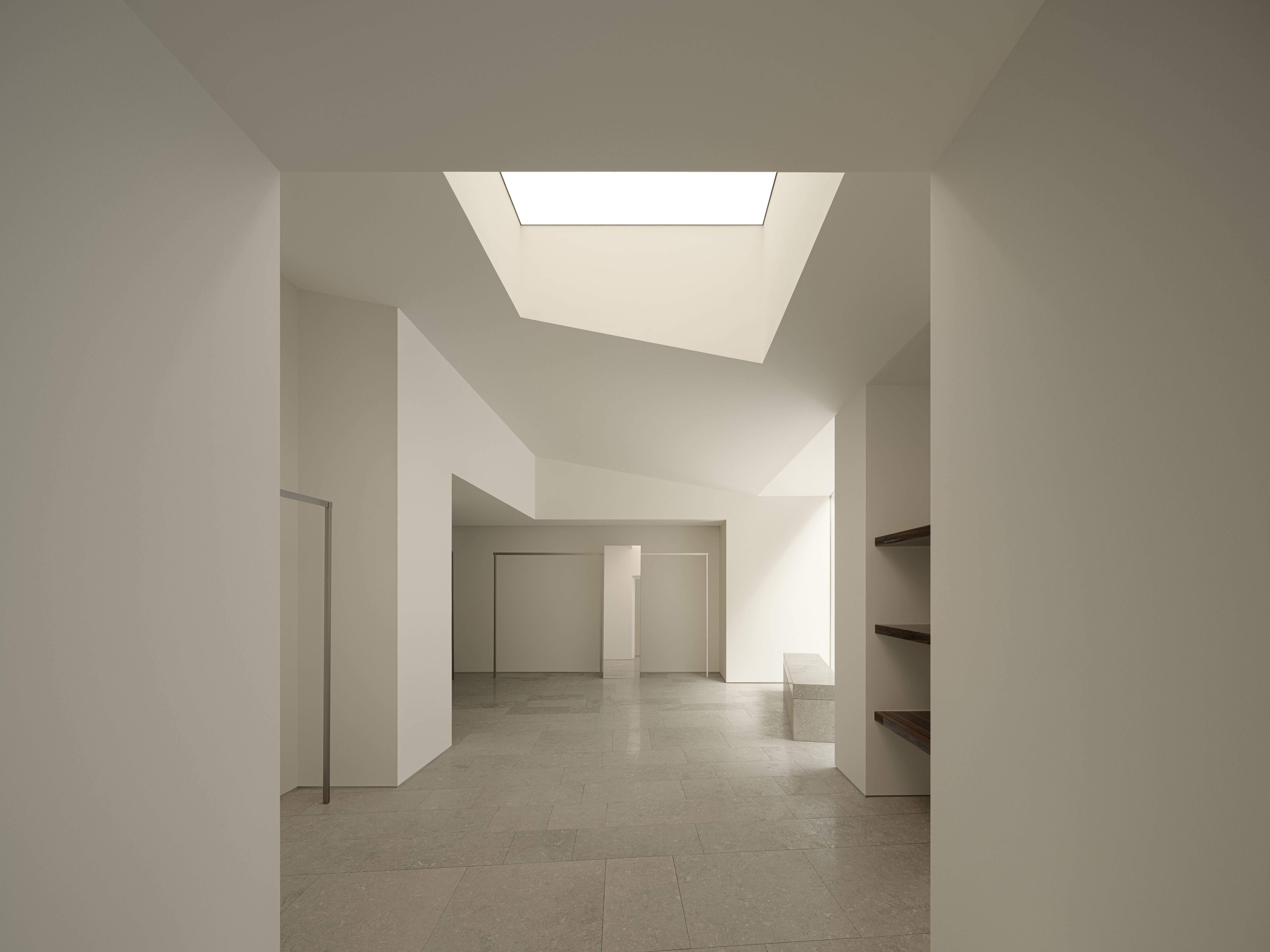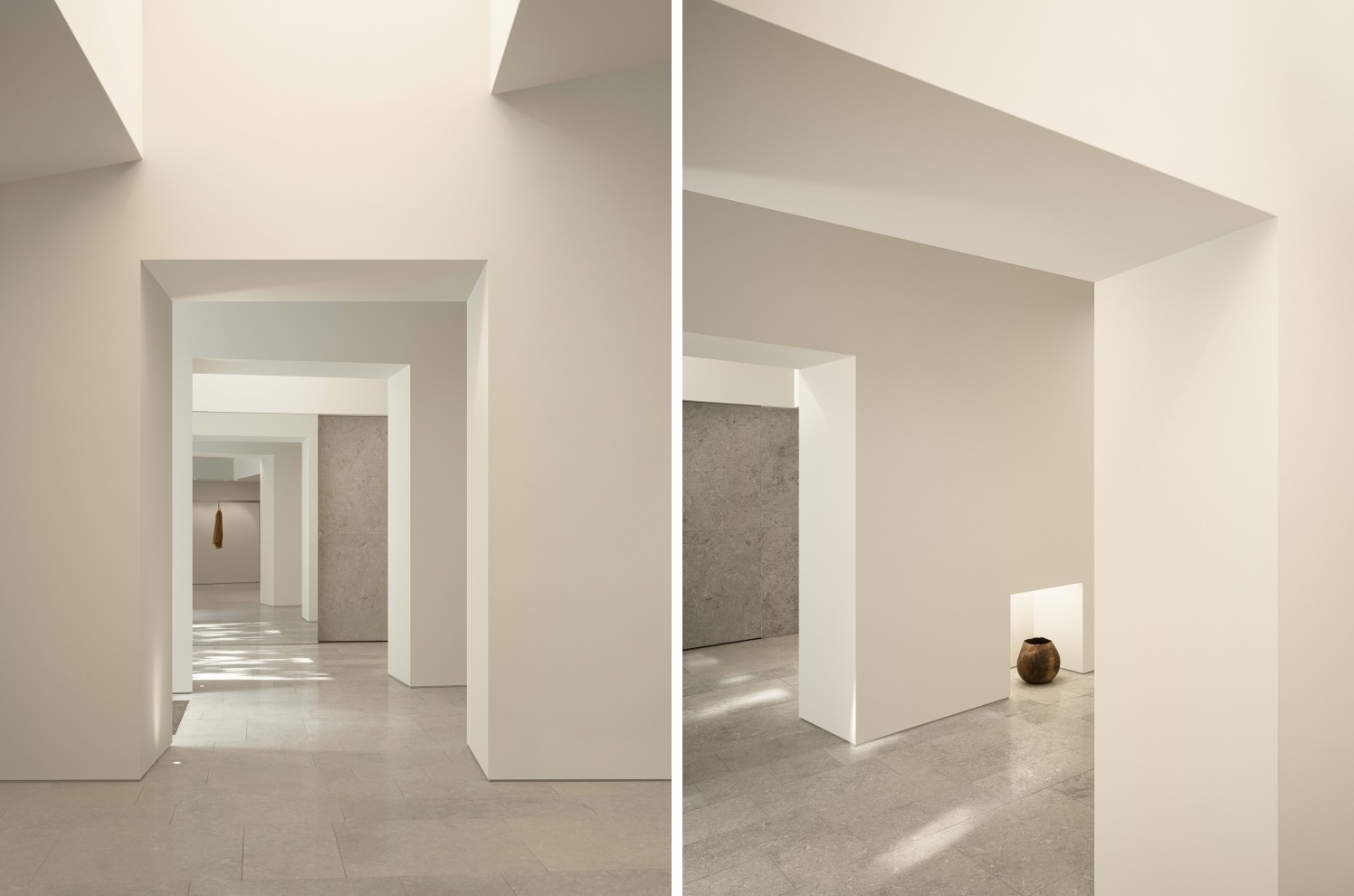 开间KEIGAN携手建筑事务所CHAOS PROGRAMME,以“雕凿的白色房子诠释新建筑空间”,创造了内与外、 私密和公共、 开放和关闭的空间关系。将自然光影、流动动线与松弛高级的品牌调性相融合。通透的玻璃立面、简约的材质层次与艺术化陈列区域,共同营造出一个大道至简的意境空间,既回应历史,亦对话当代。